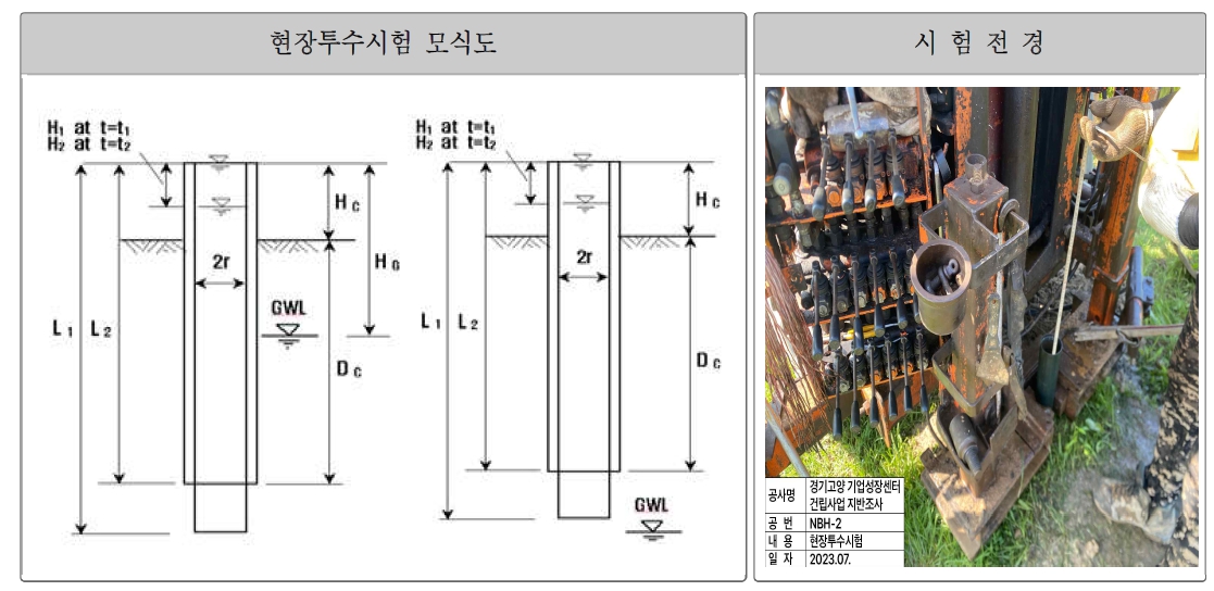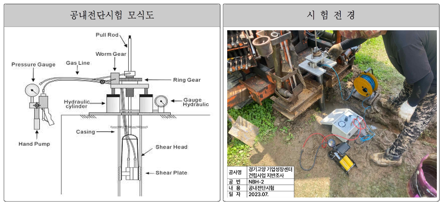 - 현장시험 : 표준관입시험, 투수시험, 수압시험, 공재전단.재하시험