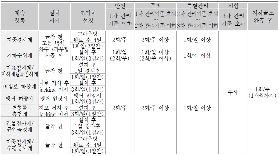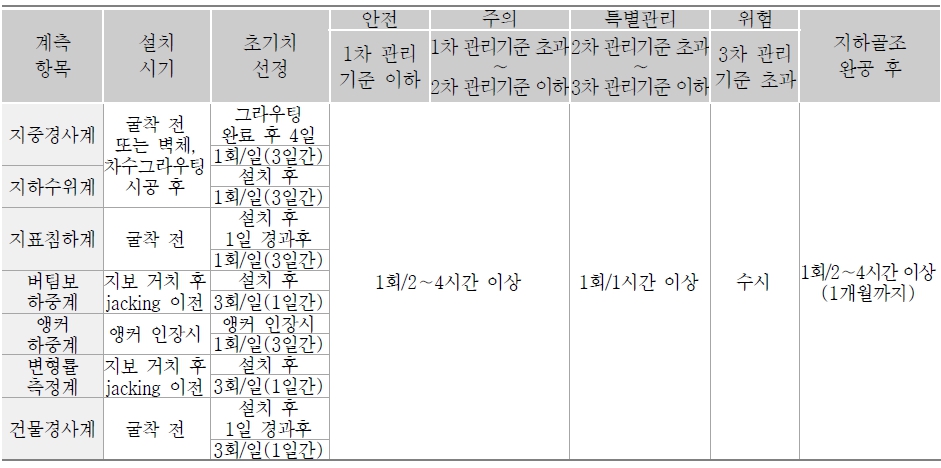 - 굴착시 인접건물 및 구조물의 영향(변위,침하 등)을 계측